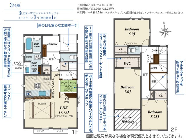 - 33.88坪~36.41坪(112.00㎡~120.37㎡)