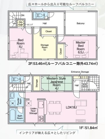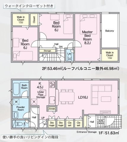 8号棟 1F:LDK18帖に隣接する洋風和室4帖 CL設置はお子様の遊び場・奥様の家事室に便利!リビングスルー階段♪2F:主寝室7.2帖・洋室6帖・洋室5.2帖 CL設置♪ホール収納♪ワイドバルコニ - 向き