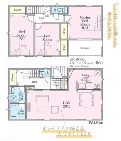 2号棟 1F:LDK広々17.2帖に隣接する洋風和室4.5帖 CL設置はお子様の遊び場・奥様の家事室に便利!2F:主寝室7.2帖・洋室6帖・洋室5.2帖 CL設置♪ホール収納♪南面バルコニー♪ - 向き