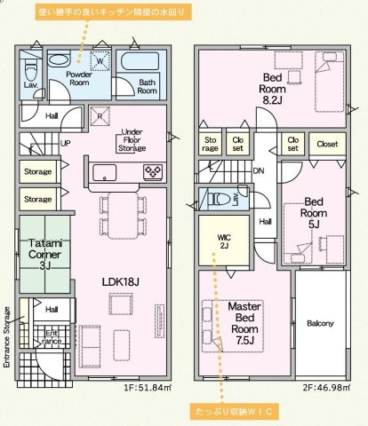 1号棟 1F:LDK15.8帖に隣接する洋風和室3.7帖 CL設置!♪リビングスルー階段♪2F:主寝室7.2帖 WIC1.5帖設置!洋室6.3帖・洋室6帖 CL設置♪廊下収納♪バルコニー♪ - 向き
