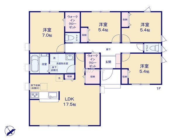 4号棟 1F:LDK15.7帖に隣接する洋室3.7帖!キッチン収納・ホール収納 収納豊富♪2F:洋室6.3帖・洋室5.1帖 WIC設置!洋室6.4帖・洋室4.6帖 CL設置!南面インナーバルコニー♪ - 向き