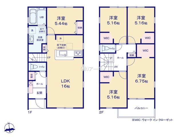 4号棟 1F:LDK18.38帖!家事動線の良い間取り♪家族が集まるリビングイン階段♪ダイニング収納♪2F:洋室7.25帖 WIC設置!洋室6帖・洋室5.5帖・洋室4.75帖 CL設置♪南面バルコニ - 向き